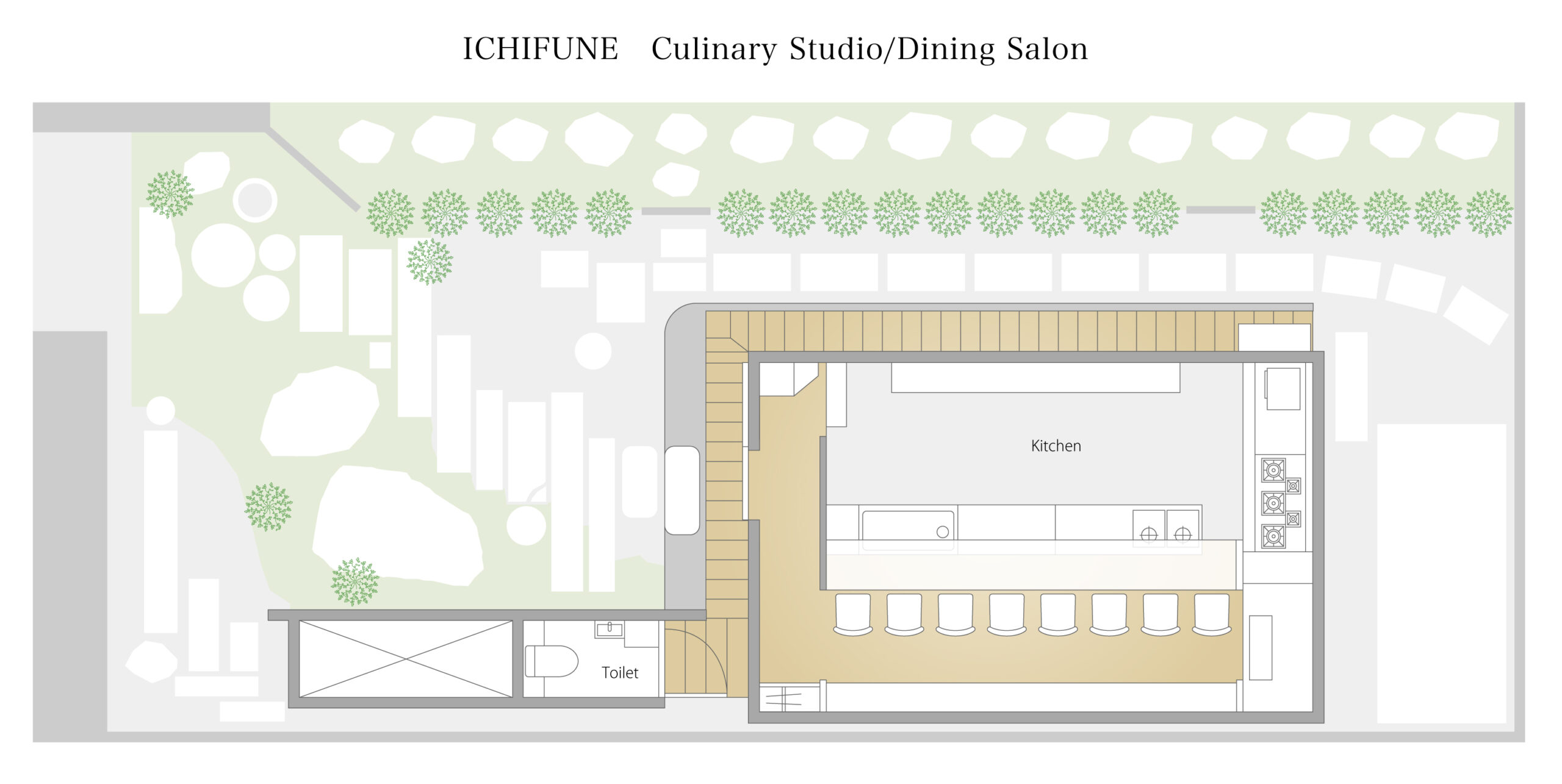 食堂(オプション)も貸切ることで敷地内は完全貸切となります。