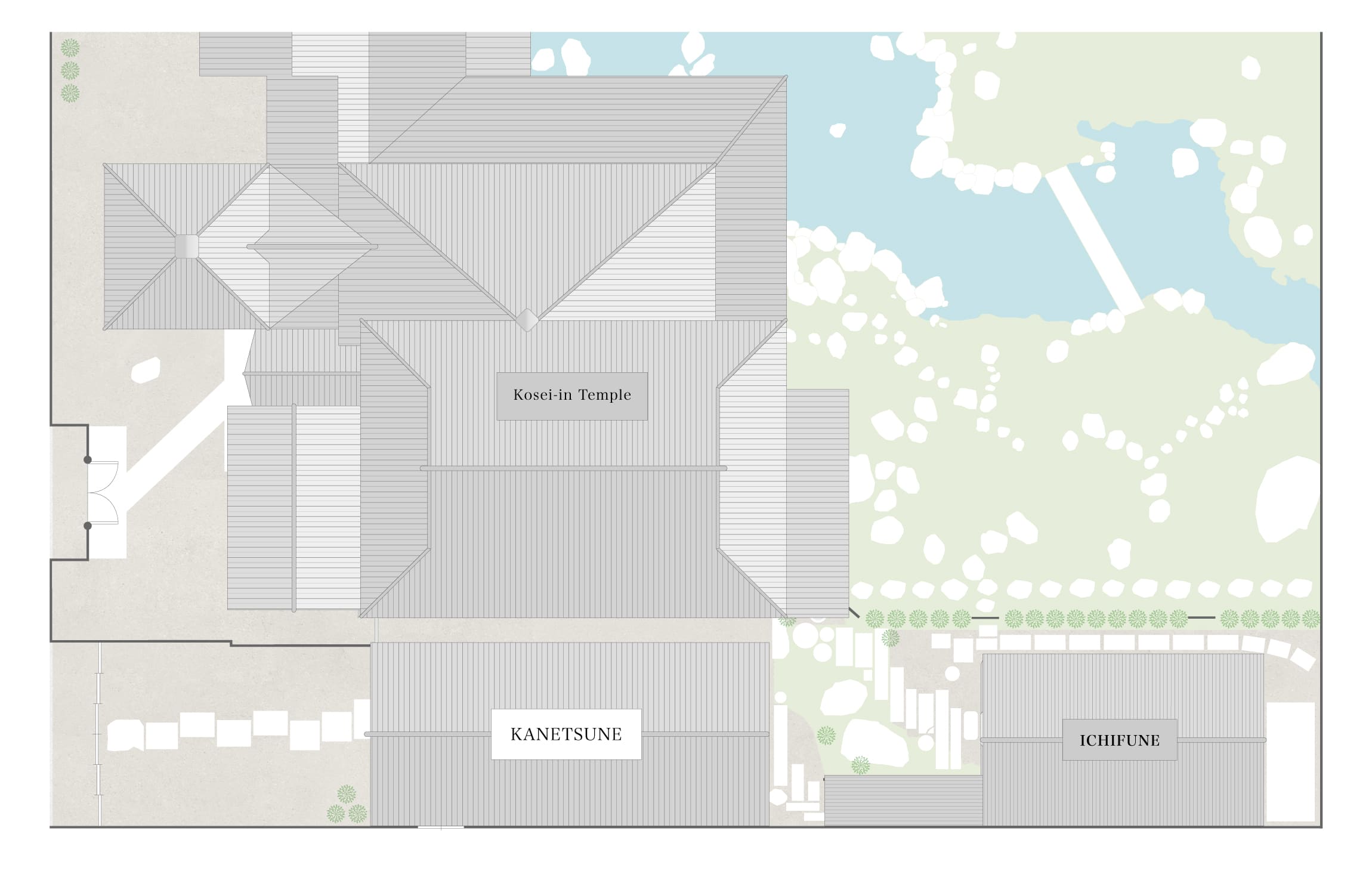 宿坊KANETSUNEは、臨済宗寺院「廣誠院」が非公開の寺院として長くその門を閉ざし、面々と守ってきた歴史的京都市指定名勝の庭園を臨む、寺院の敷地内に位置します。